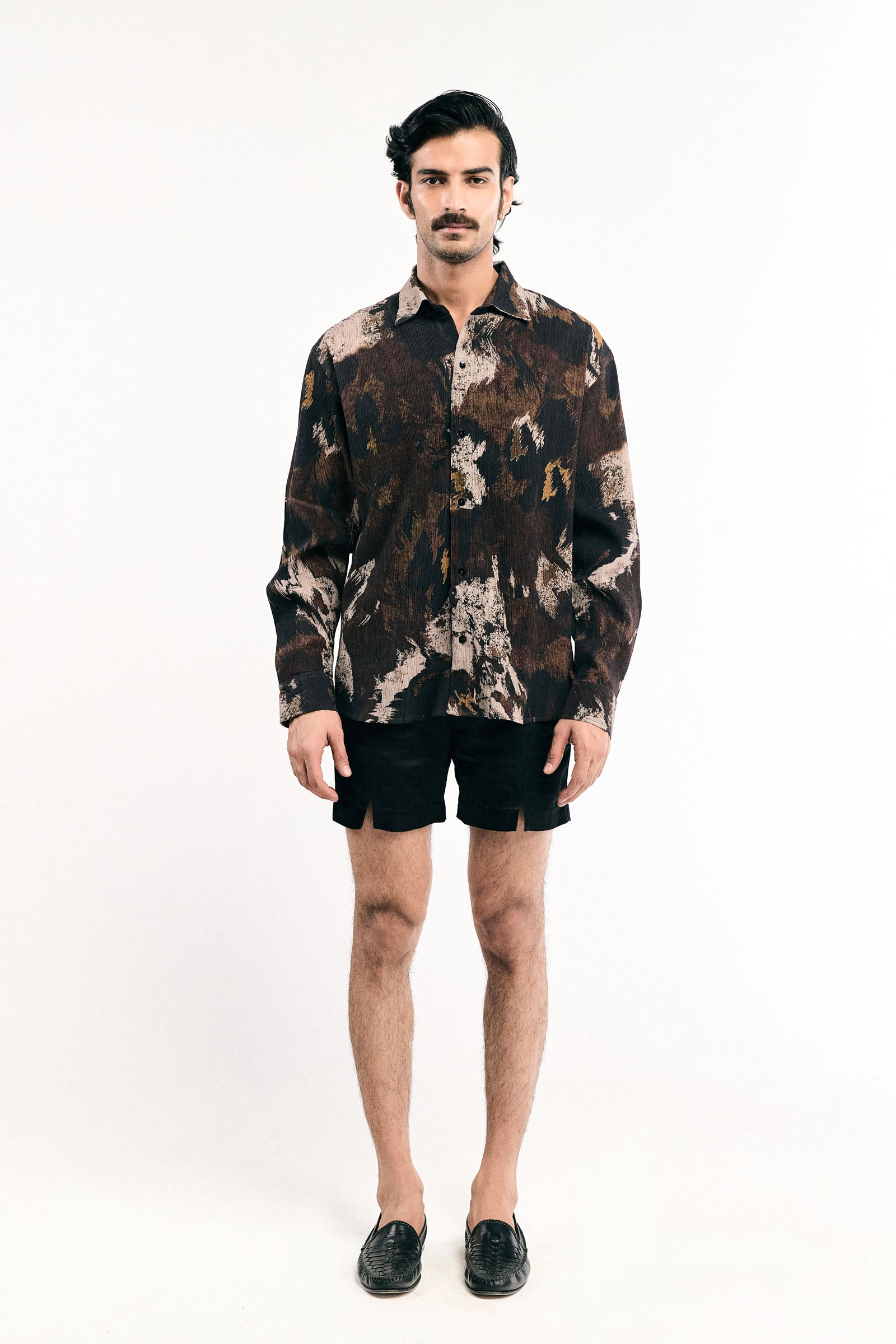 Features: Luxurious wrinkly cotton material; designed with a sharp straight pointed collar and full-sleeve construction
